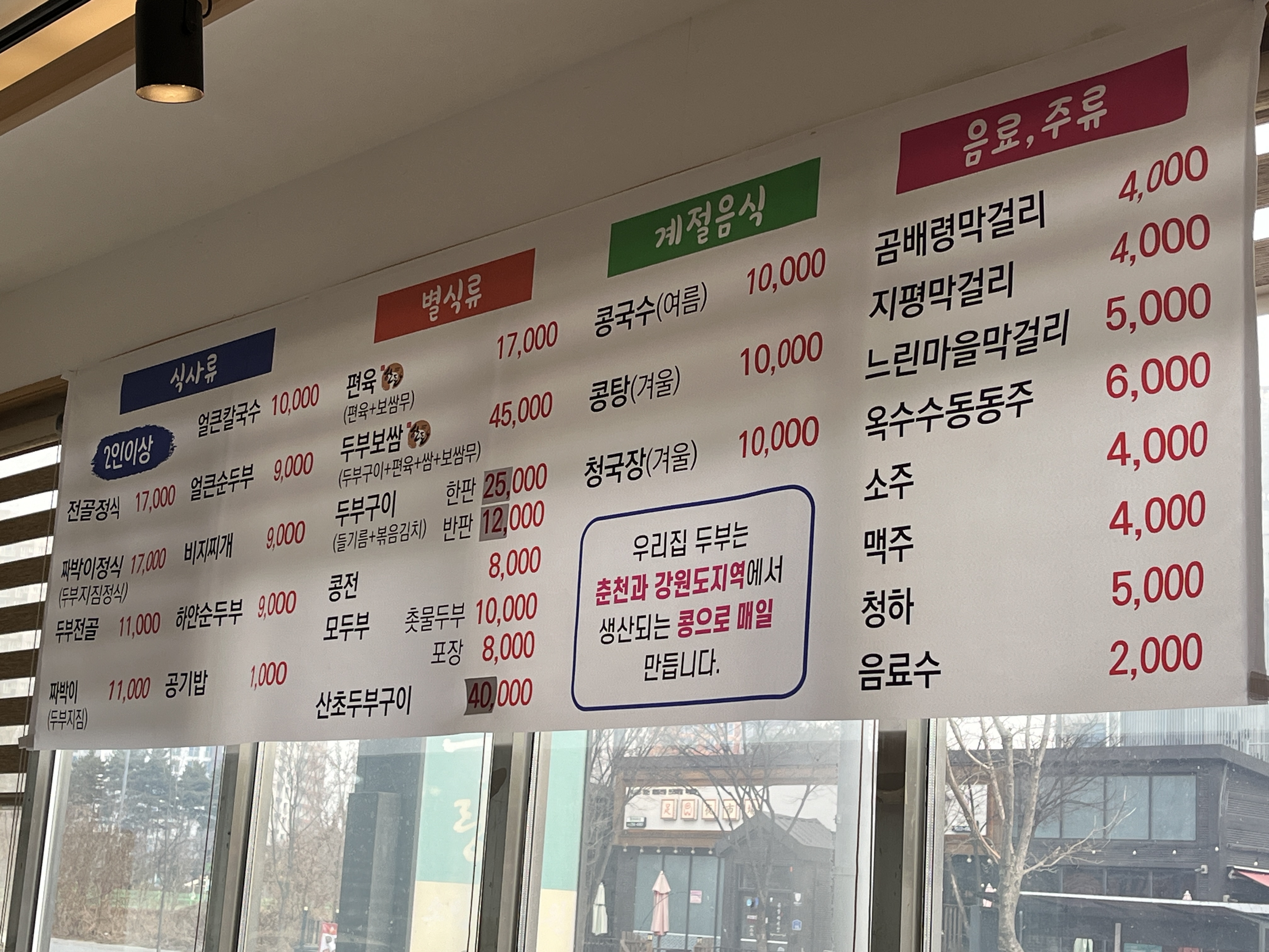 오늘은 춘천 소양강농원 콩이랑두부랑을 다녀온 리뷰입니다. 당연히 내돈내산!입니다.