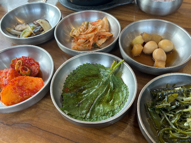 식당을 둘러보는 동안 밑반찬들이 나왔습니다.