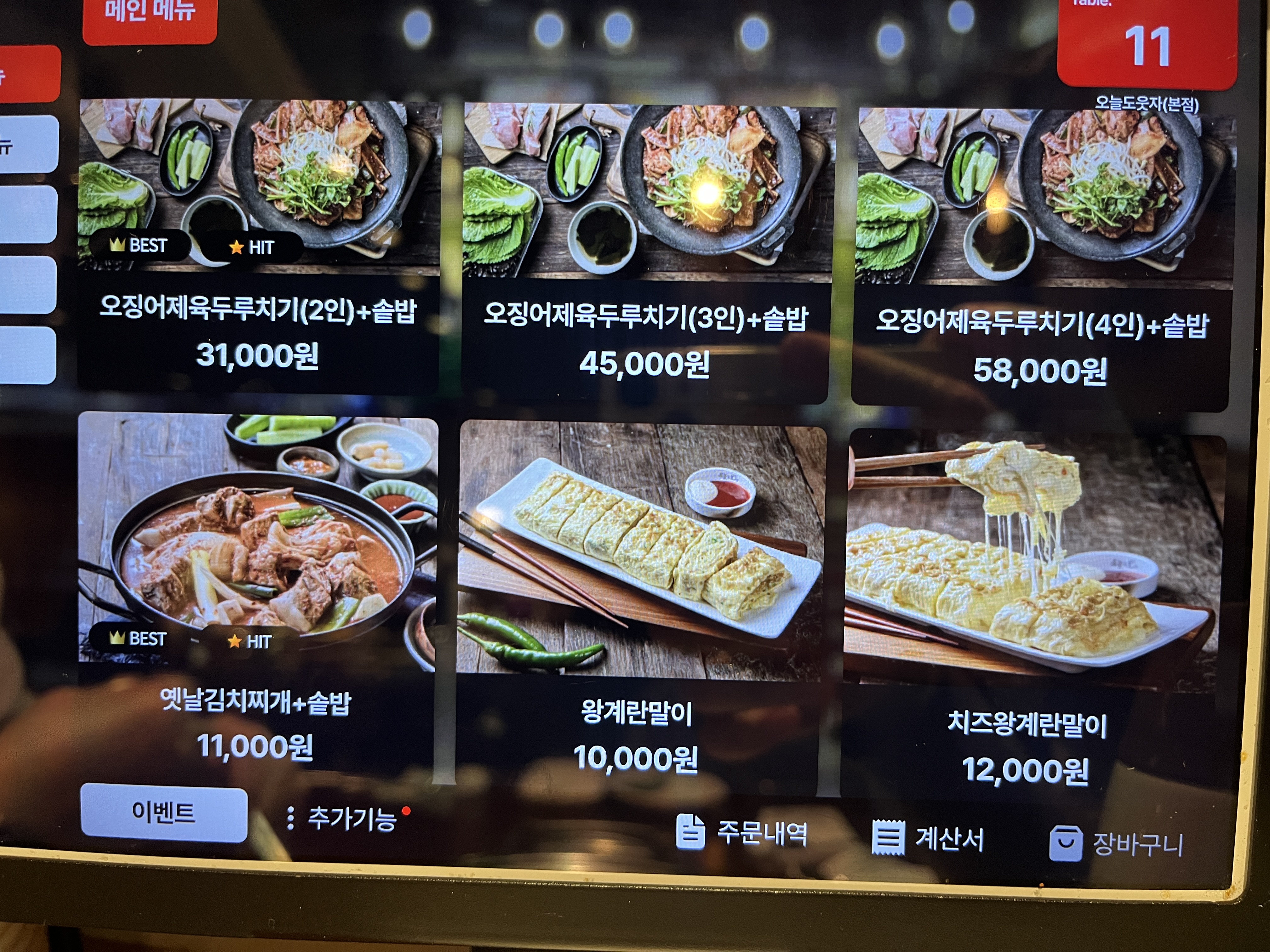 메인 메뉴인 돼지 두루치기와 오징어 두루치기입니다.